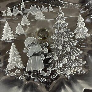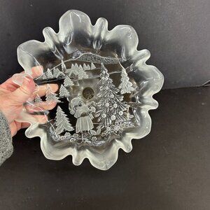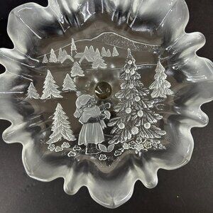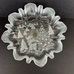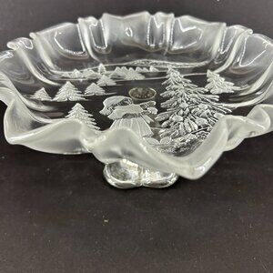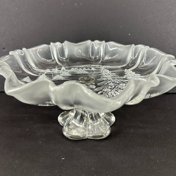 Mikasa Holiday Classics Christmas Crystal Footed Pedestal Bon Bon 9" shallow bowl