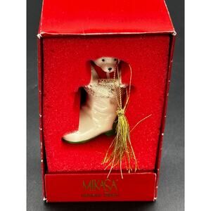 The Mikasa Holiday Magic Bear Stocking Ornament is a charming collectible ornament from Mikasa's holiday collection. Mikasa is well-known for its fine tableware and home decor items, and its holiday ornaments are popular among collectors for their quality and festive designs.he combination of a whimsical bear and a classic Christmas stocking design makes it a delightful addition to any holiday tree or decor.