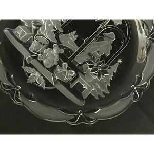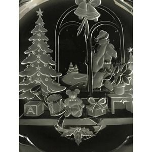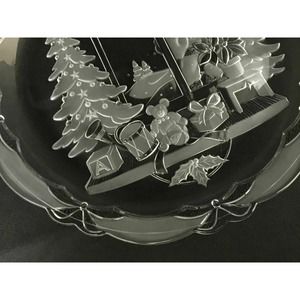 Mikasa Huge Serving Platter Plate Clear Frosted Glass Winter Christmas Scene 14"
