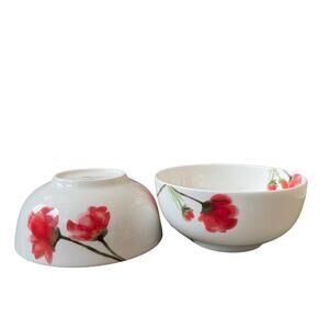 Mikasa Kiera Red Poppy Floral Porcelain Salad Bowls 6in Ceramic Set of 4