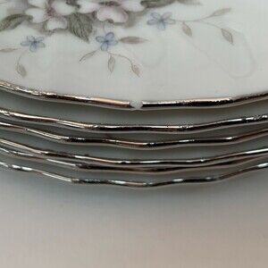 Condition: These plates are in very good condition. One plate has a small ding or chip on the silver trim, see last picture. There are a few areas of light fading on the platinum trim on some of the plates.