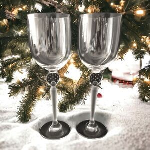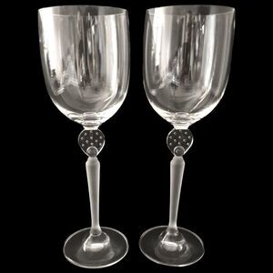 Mikasa MOONLIGHT FROST Wine Glass Goblet Crystal Long Frosted Stem 9.75" Bubbles