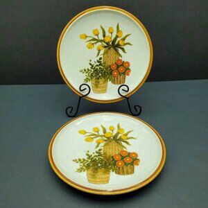 Mikasa Natural Beauty Cache Pots Salad Plates Yellow Orange Flowers in Baskets