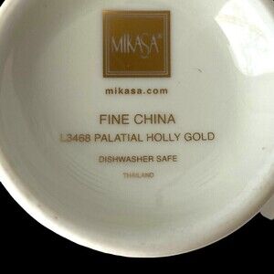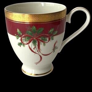Mikasa Palatial Holly Gold Mug Coffee Tea Cup L3468 Holly and Red Ribbon