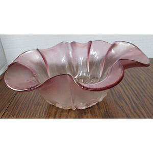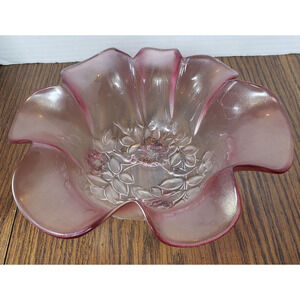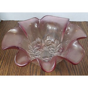 Mikasa Rosella 8" Pink Floral Crystal Ruffled Serving Bowl/Candy Dish