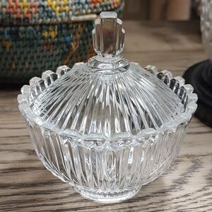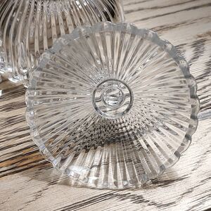 Mikasa Royal Suite Cream and Covered Sugar Bowl Set. The creamer and sugar bowl have lovely clear glass inverted ridges with scalloped rims. Perfect set to add to a collection and will go with any color tableware. Stunning Art Deco Style.