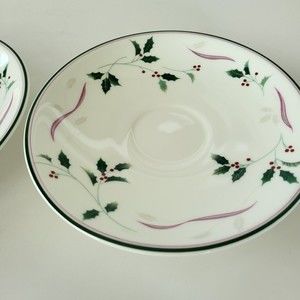 Mikasa Set of 2 Holiday Slendor Saucers Plates BONE CHINA Y1025 Christmas Holly