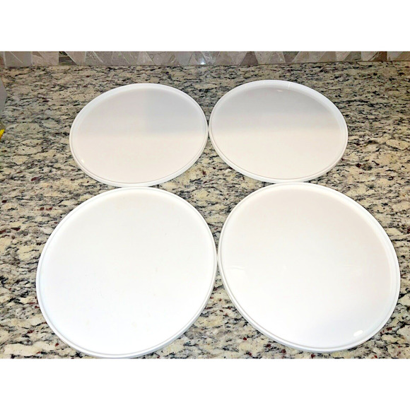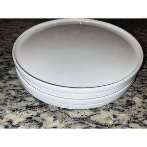 Mikasa Sloane Dinner Plates Whi8te Bone China Round 11" Set of In good condition- No chips cracks or breaks. Some minor utensil scratches from use. One does have some visible grey marks, see photos. Measurements are in the photos.