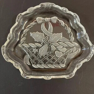 Mikasa Studio Nova Clear Glass Holiday Basket Candy Dish Vase Frosted Glass