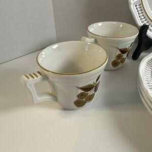 Mikasa Terra Stone Romano Style 4 Snack Plates w 4Cups Jonas Roberts Japan #7118