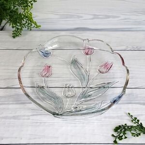 Mikasa Tivoli Tulip Plater Clear Crystal With Pink And Blue Tulips. 12"