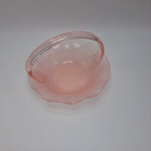 Mikasa Vintage Candy Dish Basket Pink Ribbed Handle Frosted Underside