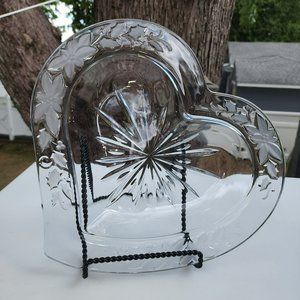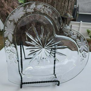 Mikasa Vintage Crystal Heart Shape Dish Frosted Raised leaves 13in