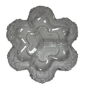 Add elegance to your table with this vintage Mikasa / Walther Crystal “Carmen” 4-part divided relish dish. Beautifully crafted with floral embossing and scalloped edging, this clear crystal serving piece works perfectly for appetizers, candies, snacks, charcuterie accents, or as a stunning display bowl.