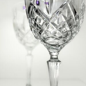 Elegant Mikasa Waterford crystal wine goblets, perfect for a romantic dinner or a special occasion. These stunning glasses will add a touch of sophistication to any table setting.