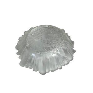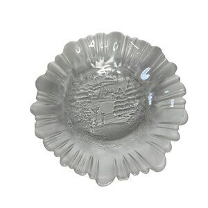 Elegant frosted glass bowl featuring a detailed winter scene. Ideal for adding a touch of sophistication to your decor or table setting.