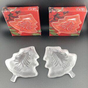 Mikasa Yuletide Tree Frost Sweet Candy Dish Christmas Frosted Glass 5" Set of 2