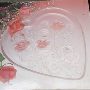 Valentine Heart Shape Large Serving Plate with Pink Roses Wedding MIKASA CRYSTAL. West Germany. Crystal heart, Item Length 12 1/2 in., Item Height: 1 3/8 in.,,