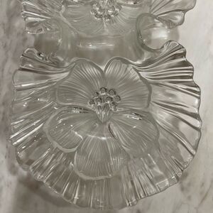 Mikasa frosted divided candy nut serving dish with double hibiscus flower bloom