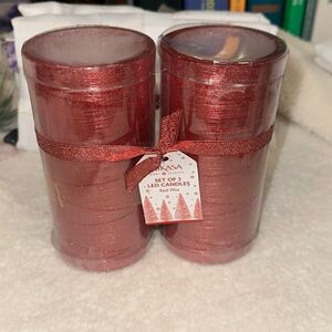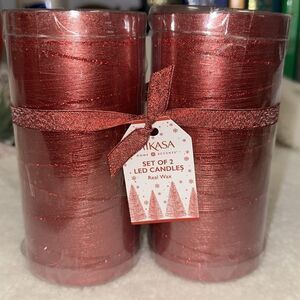 Mikasa set of 2 Christmas Holiday Red Half Glitter LED Wax Pillars