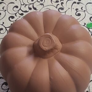 Charming decorative terra cotta pumpkin. Perfect for fall decor. Adds warmth to any space.