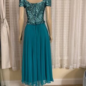 Mike Benet Stunning Teal Sequin Off-Shoulder Evening / Formal Maxi Dress
