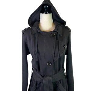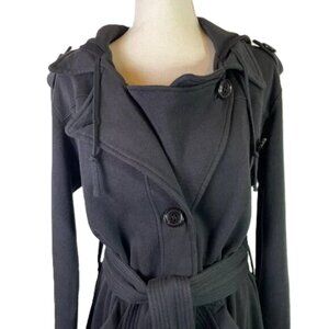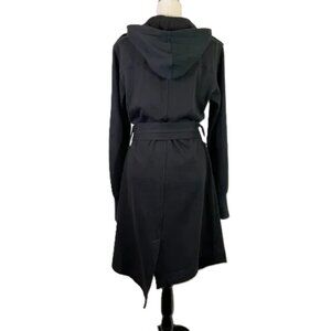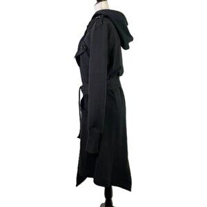 Mike & Chris Asymmetrical Hem Hooded Fleece Trench Coat Black Size L