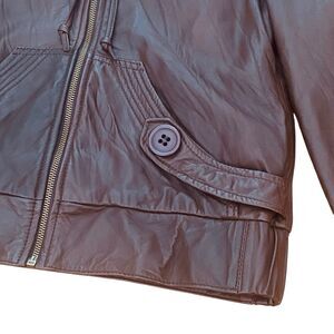 Mike & Chris Women's Genuine Leather Full Zipper Hooded Jacket Size M Brown USA