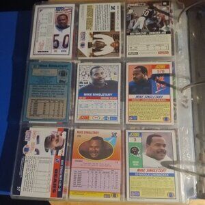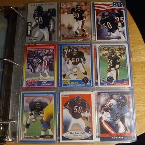 This 9-card lot features the legendary Mike Singletary, who played for the Chicago Bears. The cards are from various sets manufactured, . These sports trading cards are a great addition to any fan's collection, especially those who love football and the National Football League (NFL). The lot includes cards with images of Singletary in action, as well as cards featuring his stats and achievements. Each card is in excellent condition and ready to be added to your collection. Don't miss out on the opportunity to own a piece of football history!