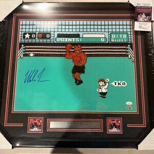 Mike Tyson autograph Punch Out 16x20 photo black Framed black red double v matting 2x Punch-Out logo sliver plaque (1st line Punch-Out!!, 2nd line Mike Tyson, 3rd line “Iron Mike”) Authenticated JSA.