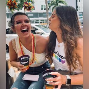 Proud Human ❤️🧡💛💚💙💜Muscle Tank Sleeveless Tee! White crop tank with rainbow colored hearts. 100% Cotton. Smoke Free home.