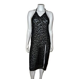 Miken Juniors' Lurex Animal-Print Midi Cover-Up Dress Black Large NWT