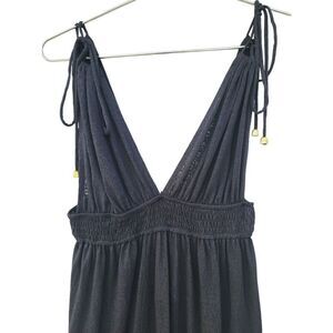 Miken Smocked Swim Cover Up Black Midi Leopard Cheetah Semi Sheer Size Sr
