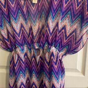 Miken Swim Bright Chevron Cover Up Women's Size Small Purples Blue Multicolor