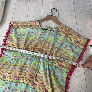 New with tags size small. Cute lightweight bright cover up with pink poms.