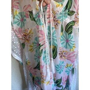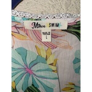 Like new miken swim beach swim pool cover up tropical floral with a mesh white trim and a tie front