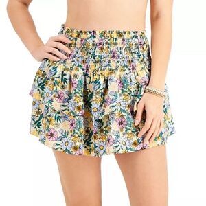 Miken Swim Floral Tier Elastic Waist Coverup Skirt Size XL NWT