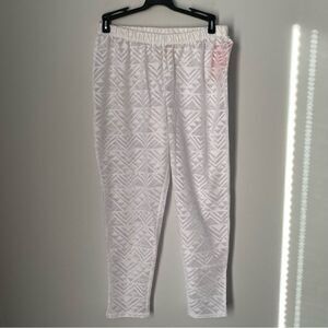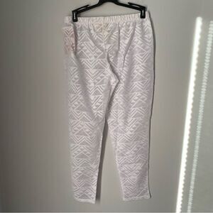 White see thru. Elastic waist. Jogger style pants. Geometric woven.