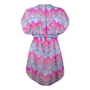 Miken Women's Ikat Chevron Chiffon Swim Cover Up Mermaid Blue Size XS