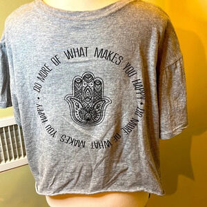Miken cropped ‘do more of what makes you happy’ raw hem top