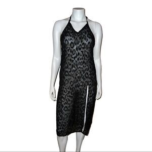 Miken Juniors' Lurex Animal-Print Midi Cover-Up Dress Black Small NWT