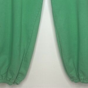 Looking for a comfortable and stylish pair of women's sweatpants for your activewear? Check out these Miken brand capri sweatpants in green and white paisley pattern. With a pull-on closure and no drawstring, these sweatpants are perfect for any occasion. They feature "90" on the leg for added flair and come in a size medium. The material is unknown, but these sweatpants are perfect for any woman looking for a comfortable and stylish activewear option.