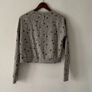 Mikey Joey Star Y2K cropped sweatshirt top small oversized streetwear grunge indie star pattern gray lightweight casual everyday wear 90s 00s vintage inspired comfy soft long sleeve pullover crewneck lounge trendy