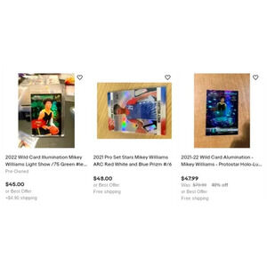 Continuing our series of lots of the University of Memphis Tigers committee, newly inked Puma deal signer, future Nba draftee, current San Ysidro superstar, Mikey Williams!! Few duplicates, Mostly Holo - Foil - Parallels or either 1st Bowman, Wild Card Gold & Many More!!! A Special Gift that Someone will Never forget - get this One of a Kind lot bundle Now a few months before his college freshman debut at Memphis -- when each One of his cards will be worth More than this entire Lot is........