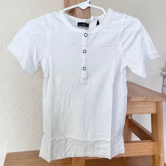 Miki Miette White Short Sleeve Crewneck Henley T-Shirt Kid’s Size 6Y NWT