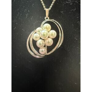 Stunning necklace. Sterling silver (clasp stamped as such) with beautiful Akoya Pearls in cluster setting. Great Mother's Day, Graduation, Birthday gift! This is shiny and new!