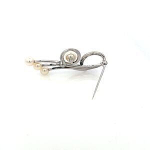 The pearls are carefully selected and harmoniously arranged on a backdrop of finely crafted sterling silver, creating a stunning contrast that highlights their natural allure. This brooch reflects Mikimoto’s commitment to quality and tradition, with designs that range from timeless simplicity to intricate, modern patterns.