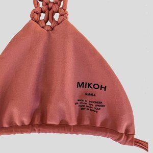 Mikoh high-waisted bikini bottom & bikini top, matching set. Rarotonga style featuring crochet details and long fringe on the top. Both top and bottom are size small.