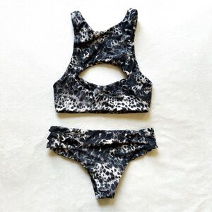 Mikoh Black and Gray Leopard Print Bikini Set - XS
