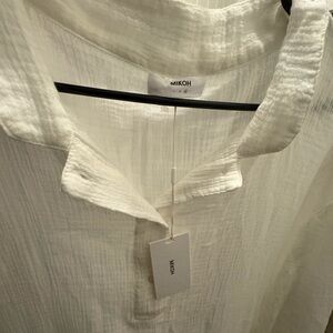 Elegant white blouse with subtle texture. Ideal for versatile styling.